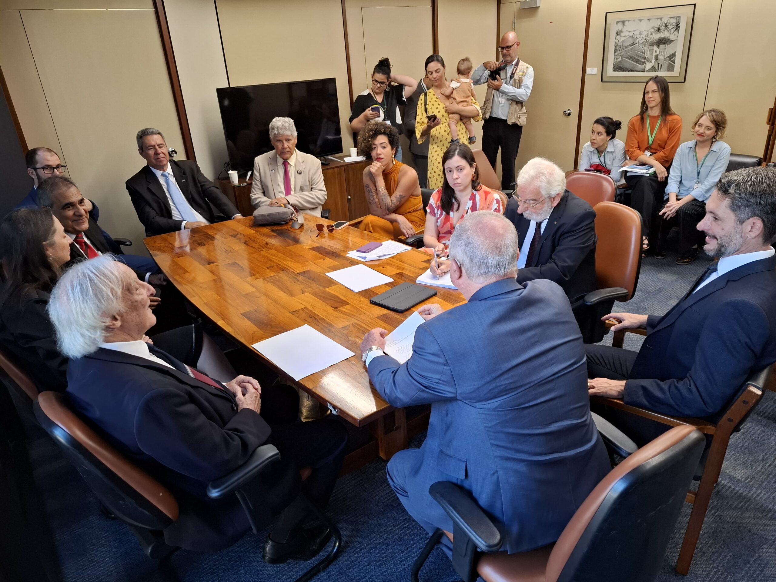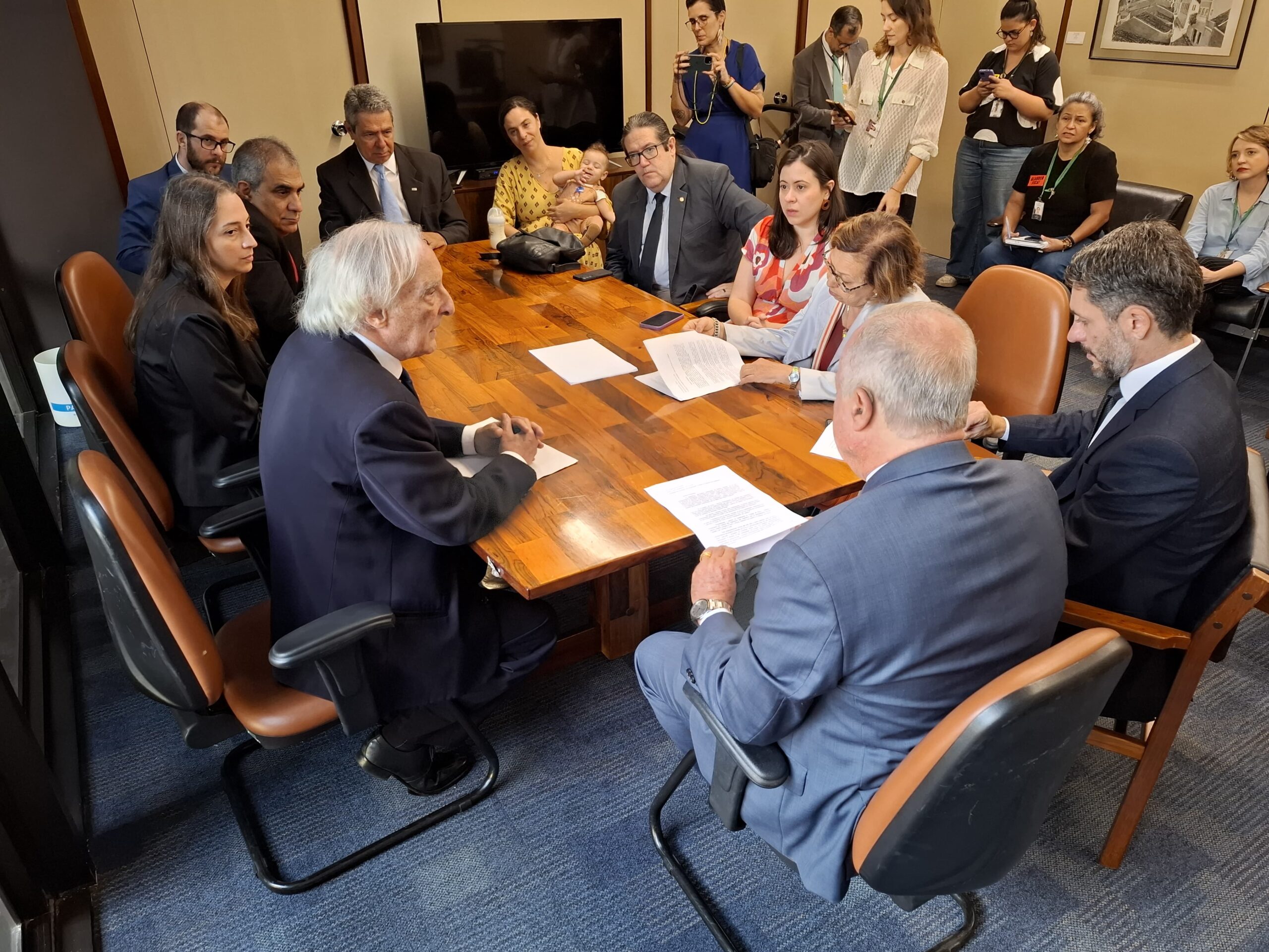O grupo de juristas, representando os redatores, redatoras, subscritores e subscritoras da Nota Pública, ora convertida em petição dirigida à Comissão de Constituição e Justiça da Câmara dos Deputados, foi recebido, hoje, dia 24 de abril de 2025, pelo Excelentíssimo Senhor Presidente da CCJ, Deputado Federal Paulo Azi, do União Brasil, Bahia, que estava acompanhado do Deputado Federal Alex Manente, do Cidadania, São Paulo, designado Relator na CCJ.