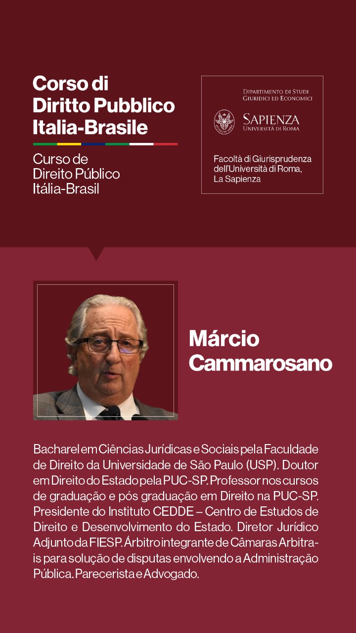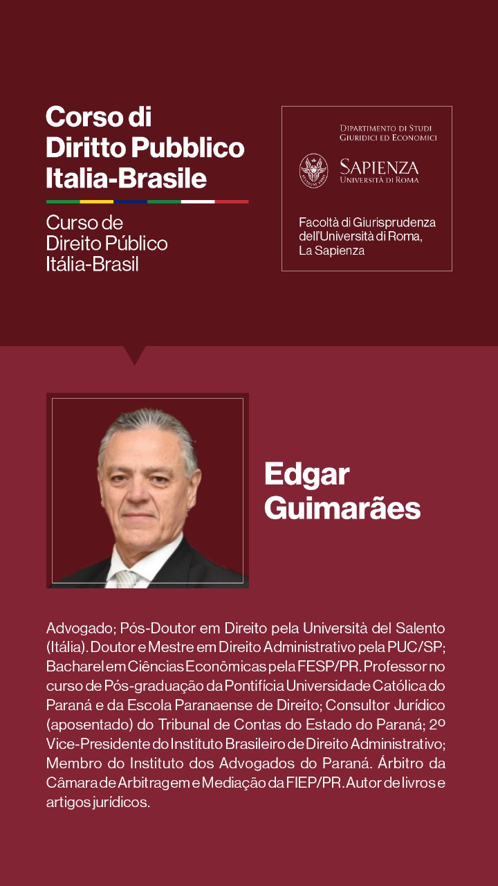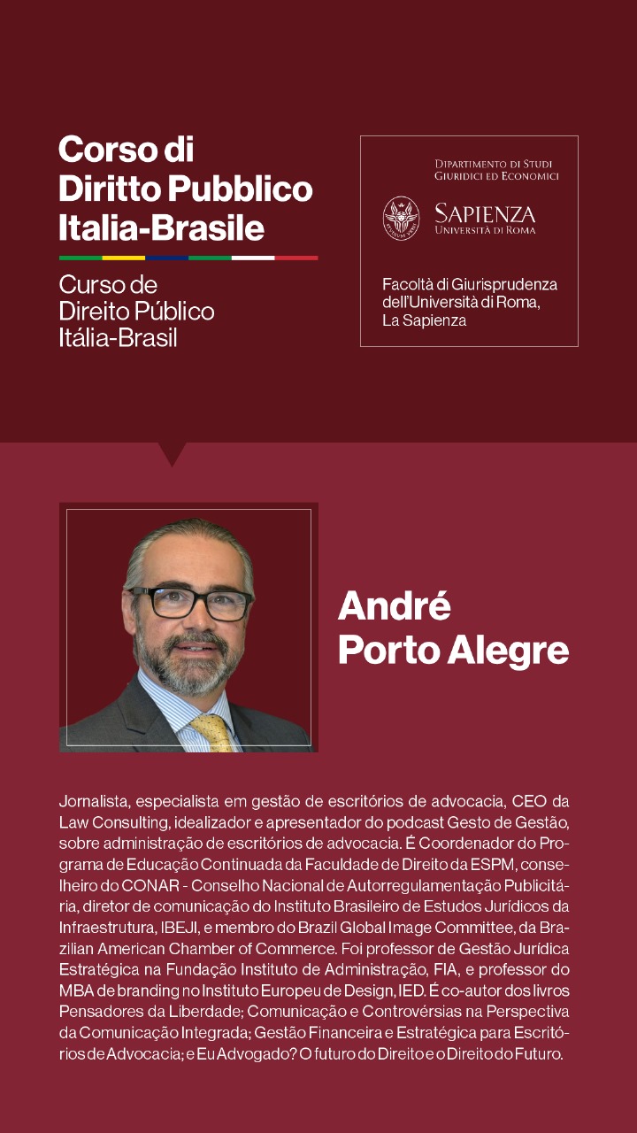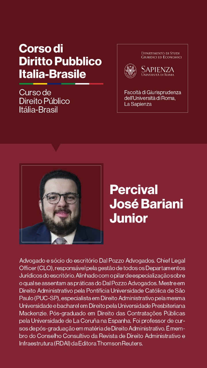 Para o Professor Augusto Dal Pozzo, trata-se de “oportunidade fantástica de nos reunirmos no oráculo do Direito, que a Università di Roma La Sapienza representa, debatendo temas relevantes para o futuro do direito público, em verdadeira cúpula de juristas, que abordarão os temas e adornarão o evento, de maneira transcendente, em experiência transformadora e de construção de memórias duradouras.”