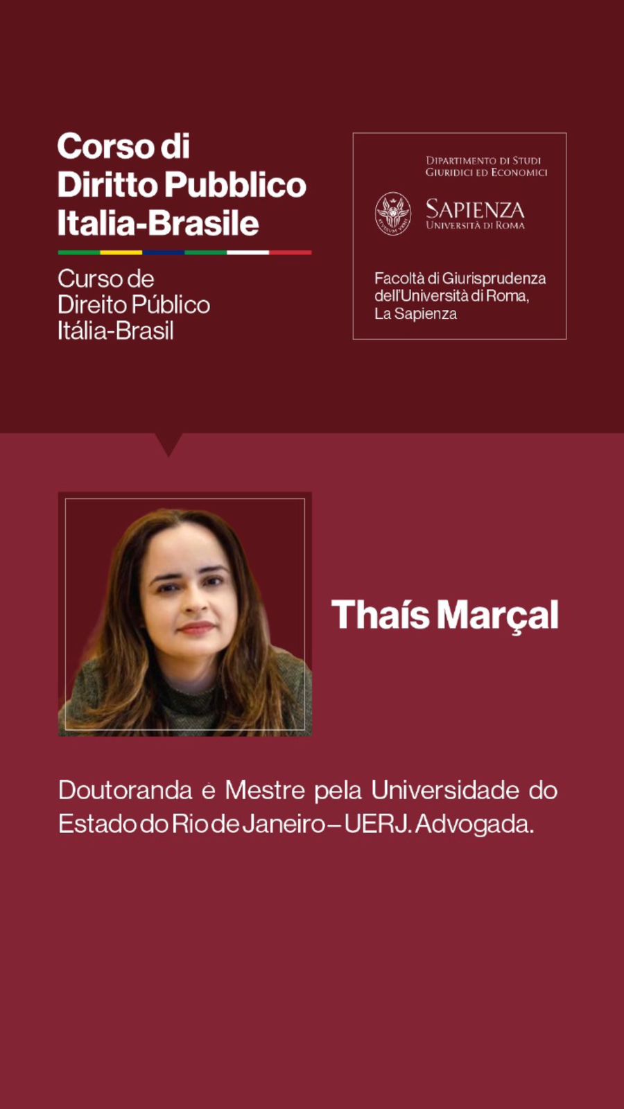 O encontro acadêmico, explica o Professor Bruno Ceretta, procurará “rediscutir os temas clássicos do Direito Público com uma abordagem contemporânea, à luz dos desafios e problemas de hoje, em formato não somente teórico, mas, também, prático, abrangendo participações de diversas perspectivas do exercício profissional e concreto do Direito. Com isso — conclui —, na tradicional Sapienza di Roma, principal instituição de ensino jurídico da Itália e que, historicamente, forma os seus quadros políticos e jurídicos dirigentes, espera-se dar início a uma proposta de estudos e debates de excelência, entre os dois Países, e renovando, principalmente, o juspublicismo brasileiro.”