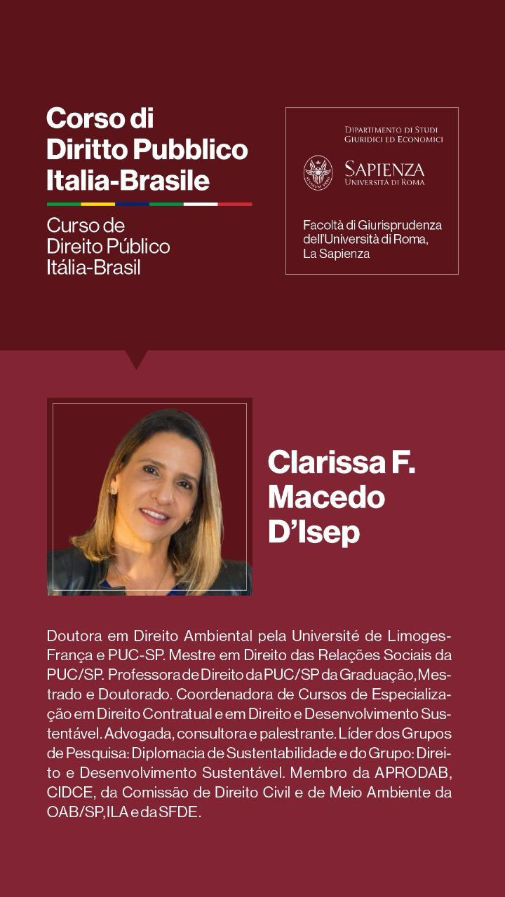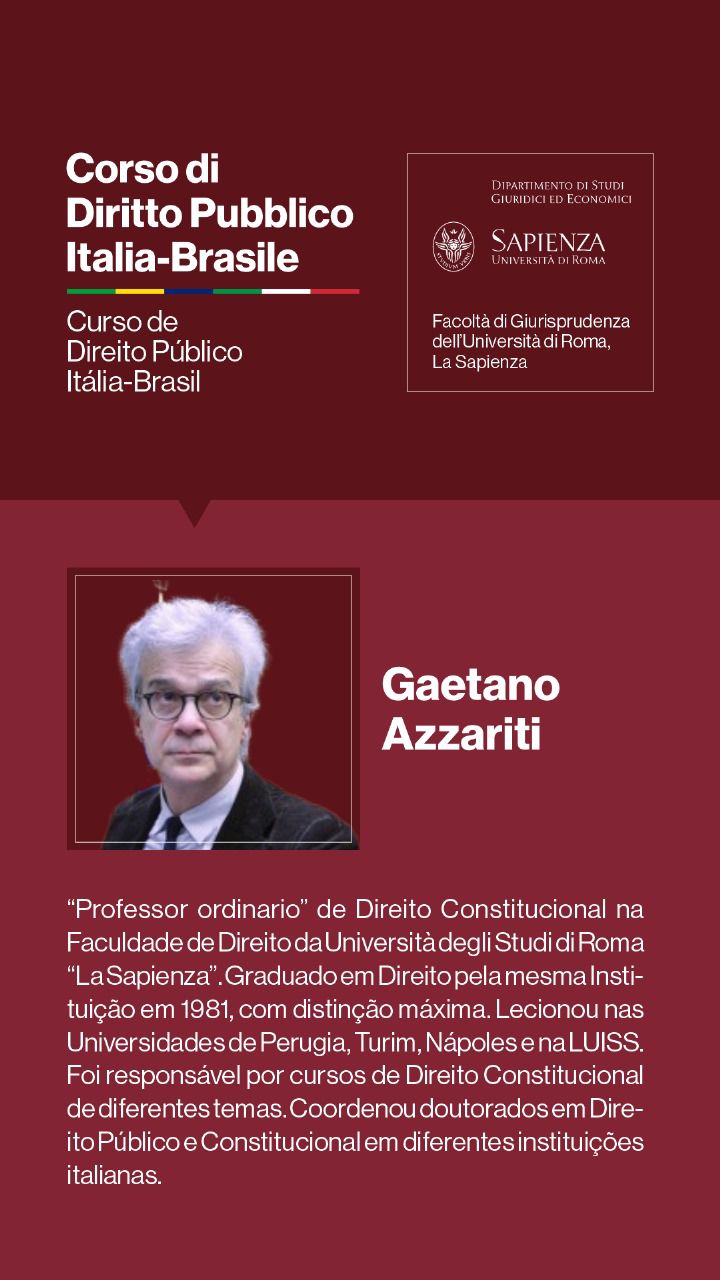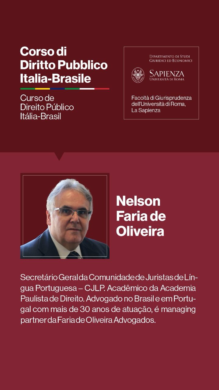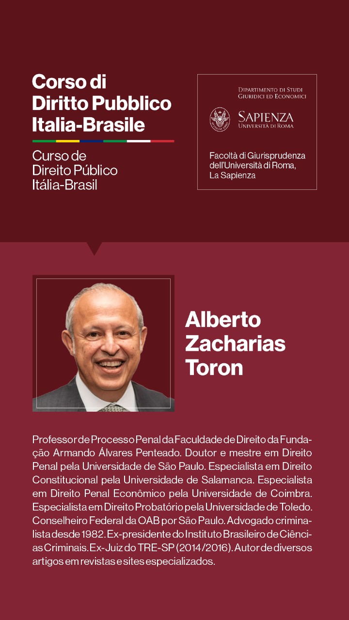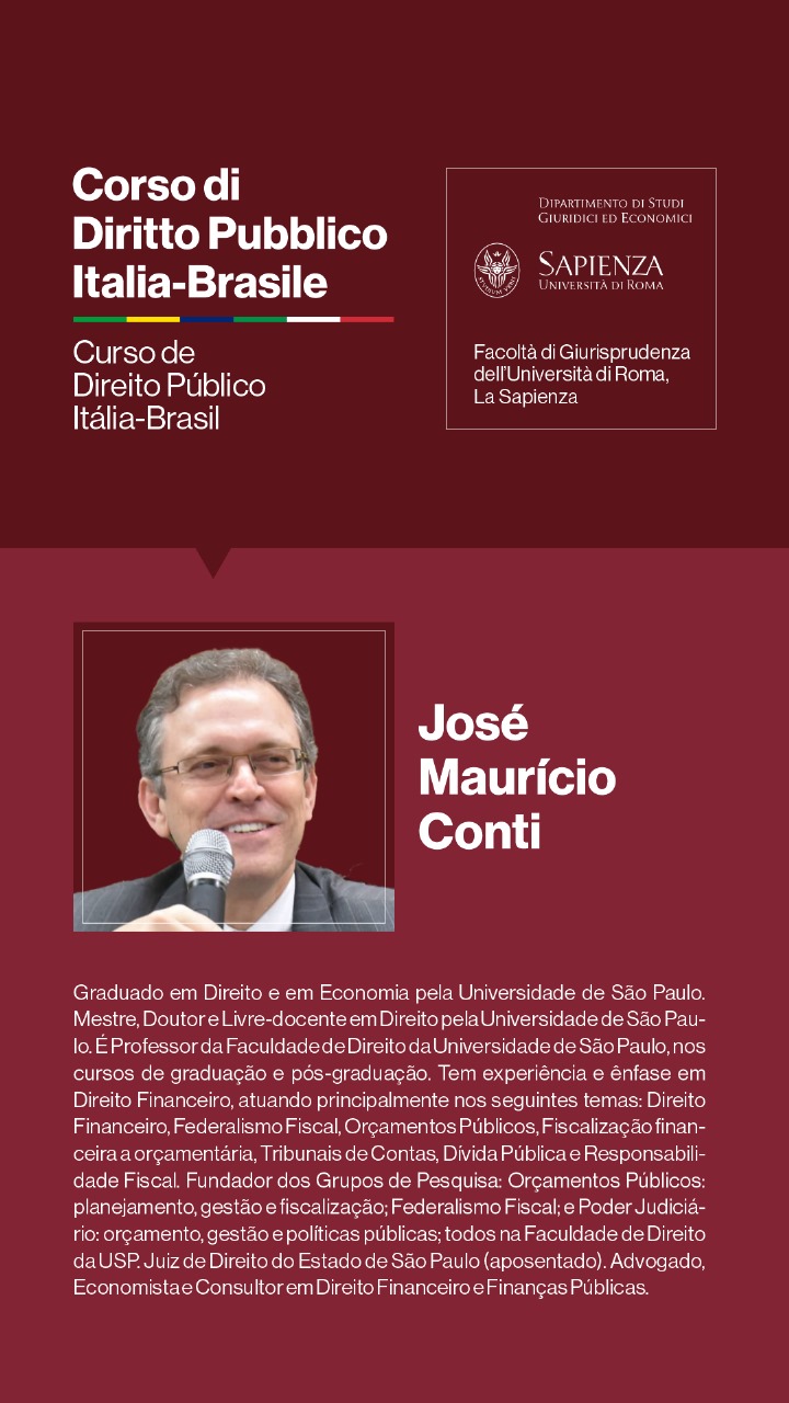 Entre os dias 1º e 5 de julho de 2024, a Università degli Studi di Roma I — La Sapienza — e seu Dipartimento di Studi Giuridici ed Economici, realizarão, sob a coordenação dos Professores Doutores Augusto Neves Dal Pozzo e Bruno José Queiroz Ceretta, da Pontifícia Universidade Católica de São Paulo, e Ines Ciolli e Francesco Bilancia, da Università di Roma I, a Cúpula Roma de Direito Público Itália-Brasil — Cupola Roma di Diritto Pubblico Italia-Brasile — e o Curso de Direito Público Itália-Brasil: Jornadas Ítalo-Brasileiras de Estudo - Corso di Diritto Pubblico Italia-Brasile: Goirnate di Studio Italo-Brasiliane.